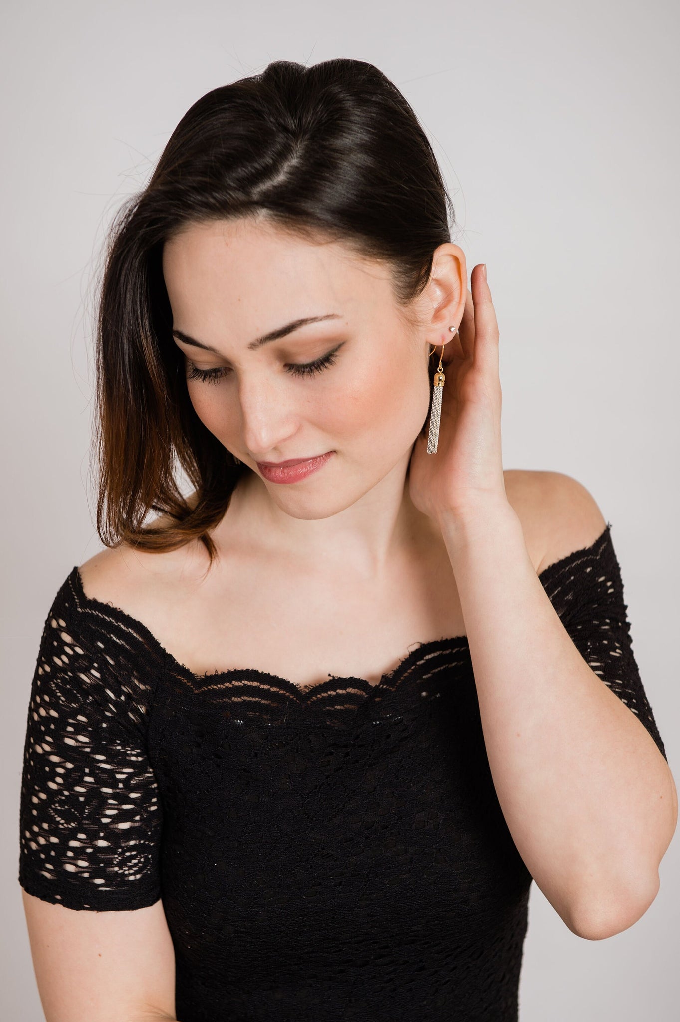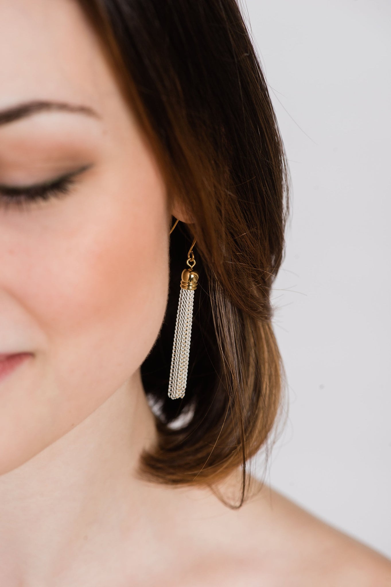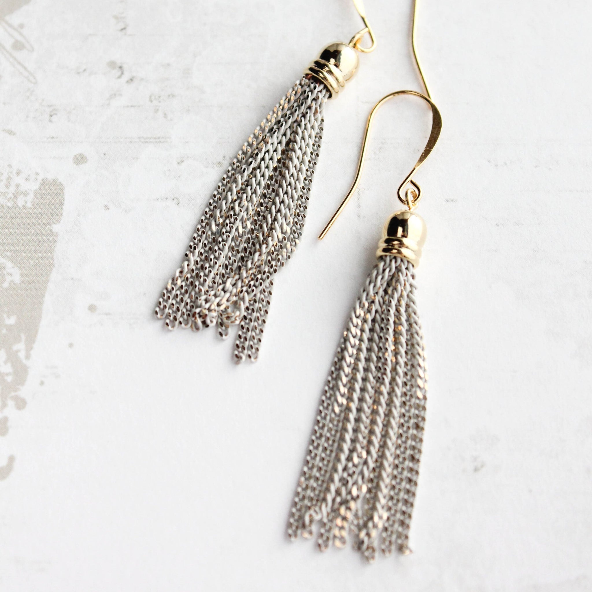 ~ The chain tassel is approximately 1.75" long (45mm) and hangs from a nickel free gold fish-hook ear wire.