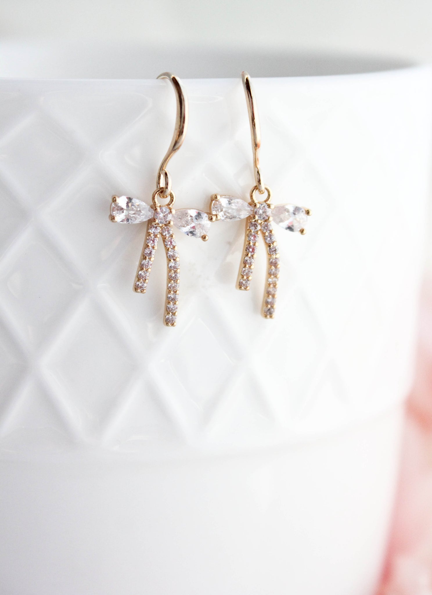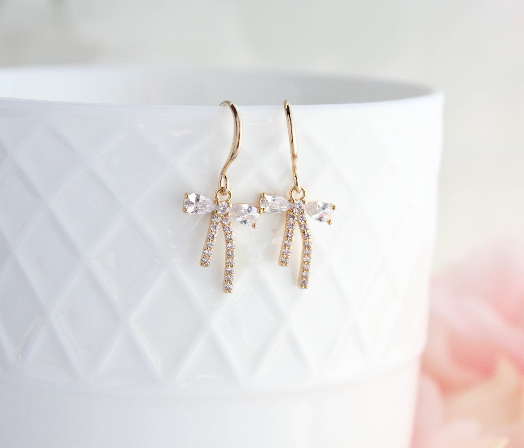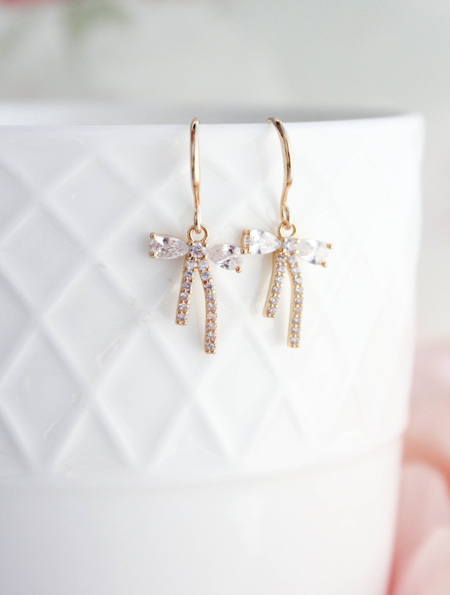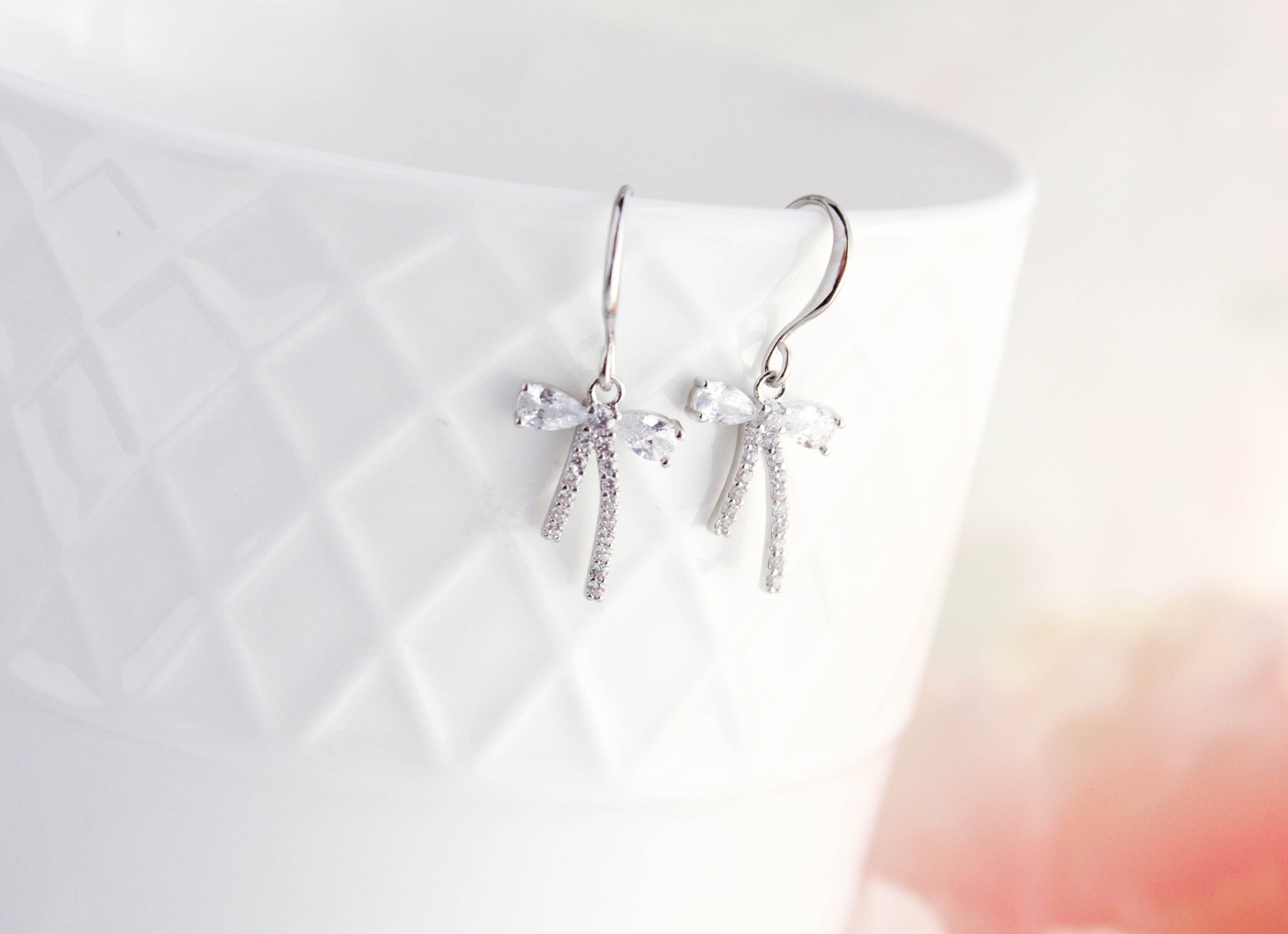 Beautiful sparkling bow earrings are trendy accessories for every occasion. These sweet little bows have sparkling crystals bows loops, catching the light perfectly. These earrings will add a small touch of sparkle to any occasion.