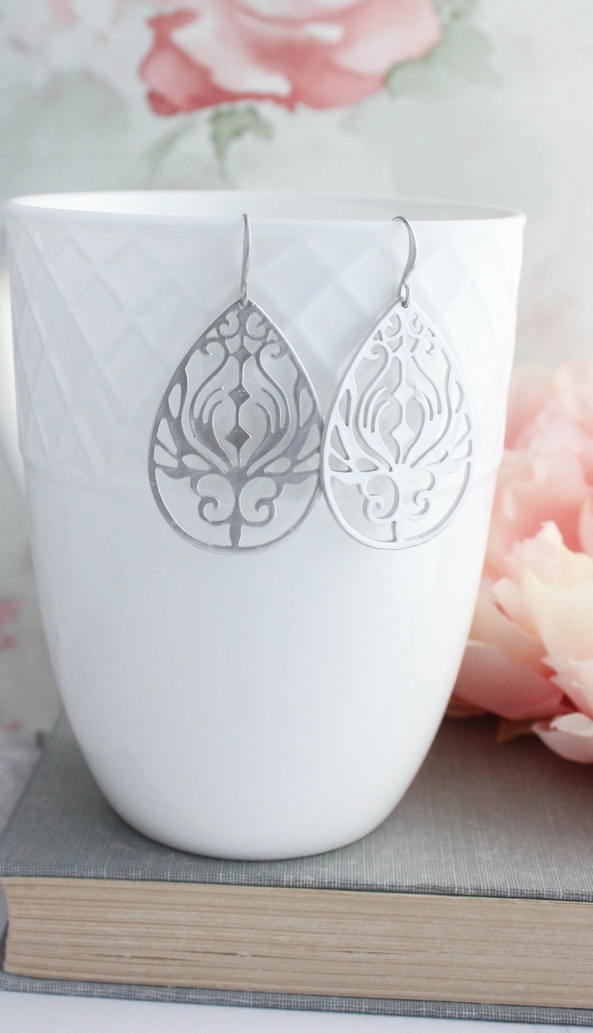 These are gorgeous peacock feather filigree earrings in matte gold! The unique modern design has intricate details. These would be beautiful for everyday or would be lovely accessories for a bridal party! Feminine, romantic and modern earrings that will soon become your favorite go-to accessories!